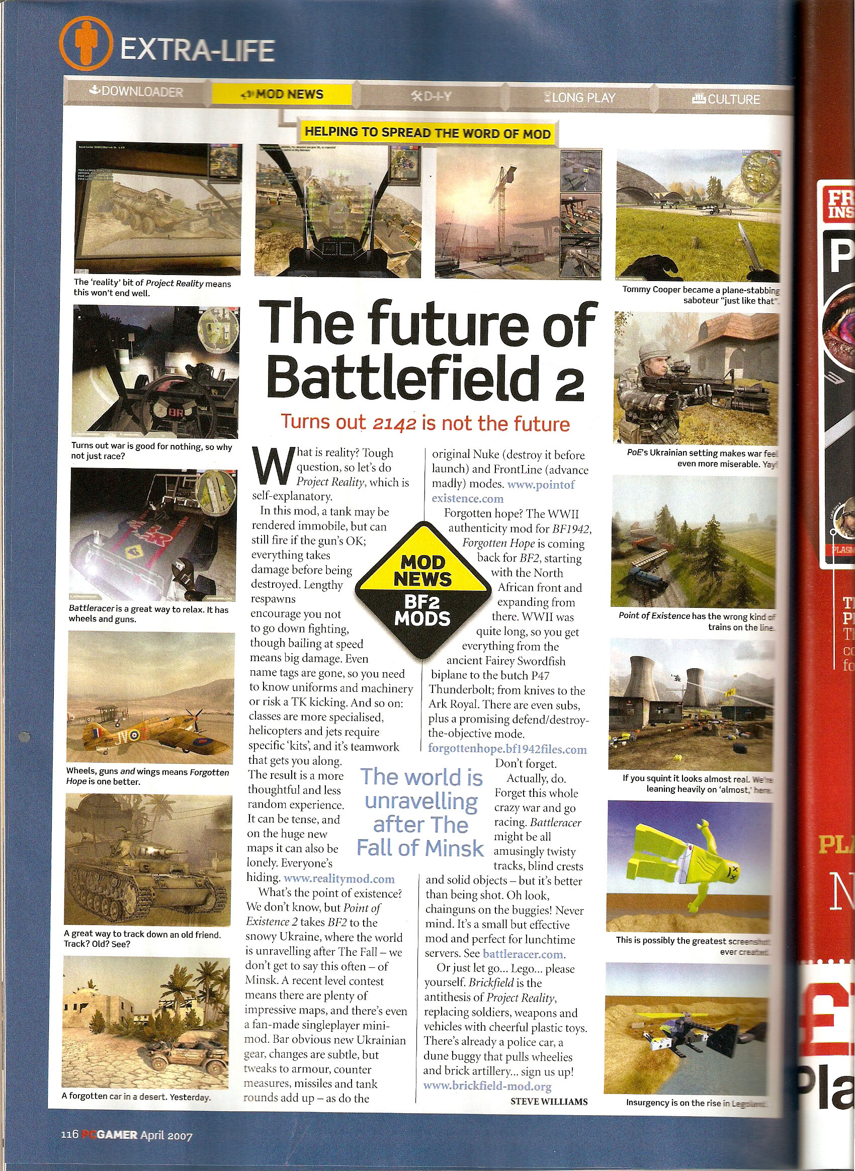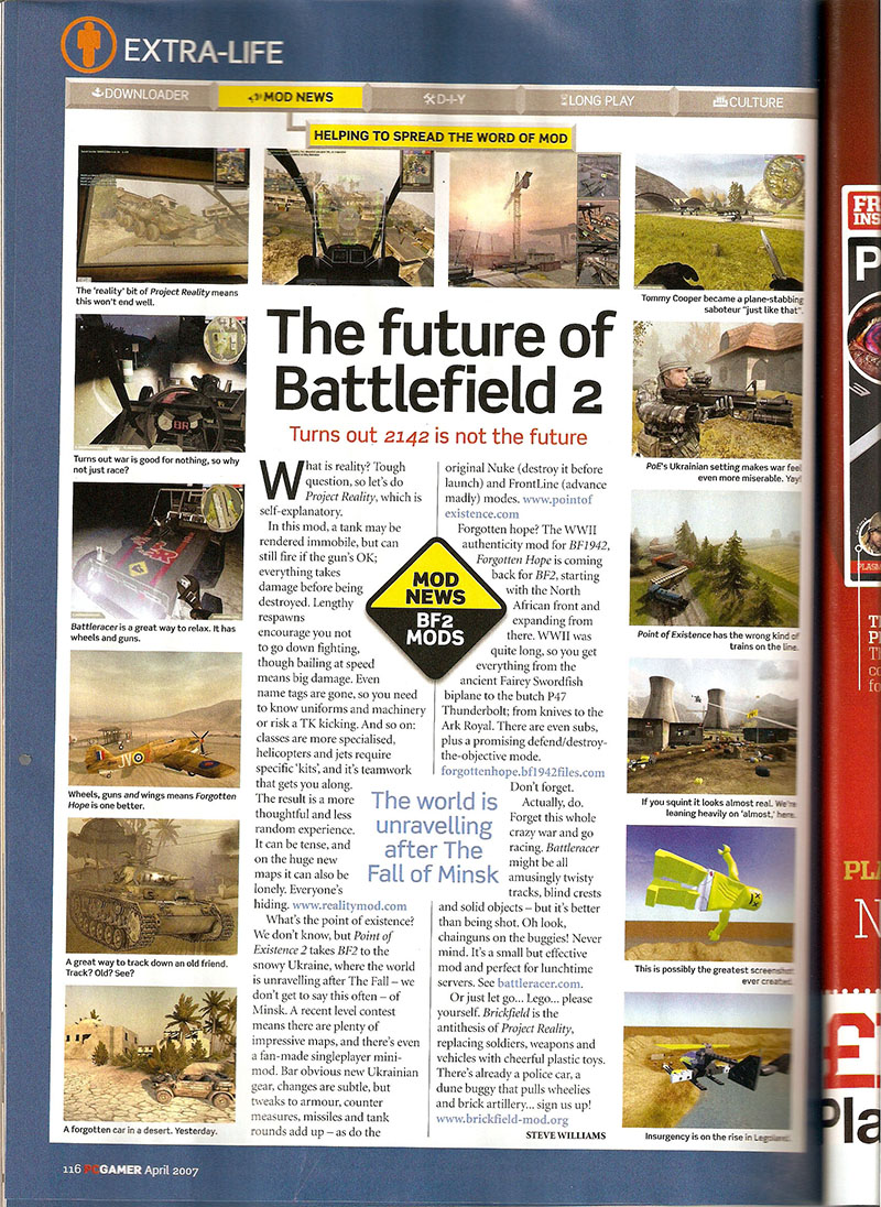 Sir. KillalotUK received the latest issue of PC Gamer UK in his mailbox today. Lo and behold, Battleracer was amongst the Battlefield 2 mods featured in the magazine! Below is a scan of the page: